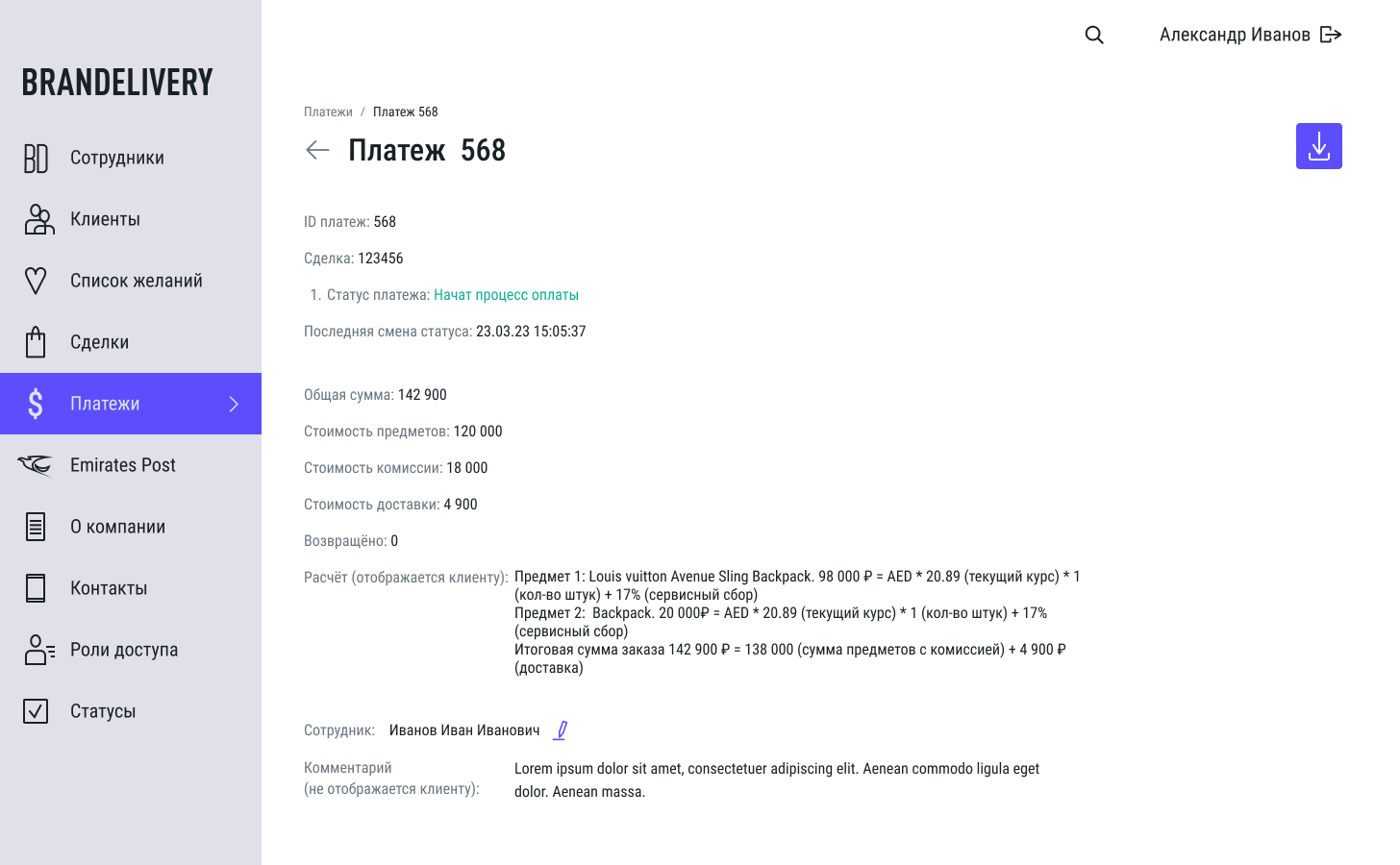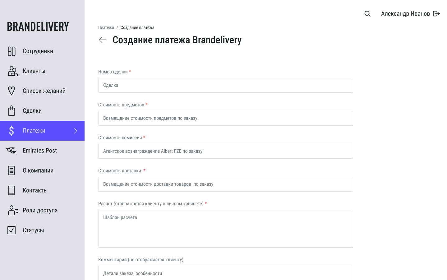 Brandelivery – профессиональная консьерж-служба для модного шопинга с доставкой товаров из-за рубежа. Позволяет покупать товары роскоши так как держит промежуточные склады в разных странах и выстраивает своеобразную логистику.